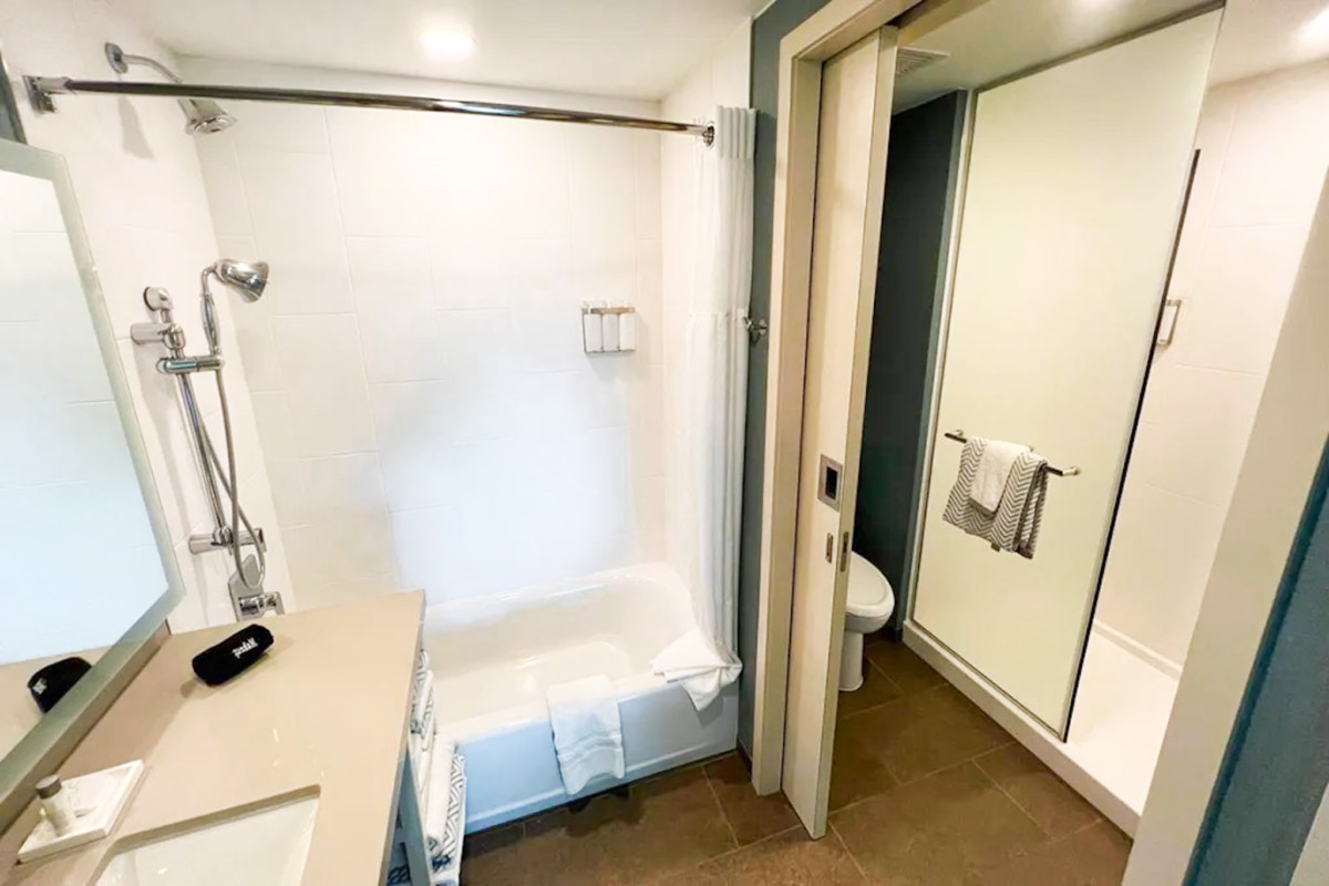 During my stay, I stayed in a 2 Queen, Sofa Bed One Bedroom Suite and I loved the room. For a family, this would be more than enough space for everyone and the mini kitchen is a huge thing for me to have in a room. I really loved the double showers in the room which would be highly convenient if you have multiple people who are trying to get ready at the same time. When I travel, I rarely use any dressers or anything like that to store my clothes, I just keep them in my suitcase but if you are someone who likes to pull their clothes out, each room does have a closet you can use but that is really the only storage in the room so that is one thing to keep in mind when you stay here.